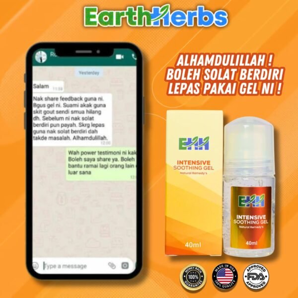 “Alhamdulillah sekarang dah boleh solat berdiri macam biasa selepas amalkan Gel EARTHHERBS ni..”