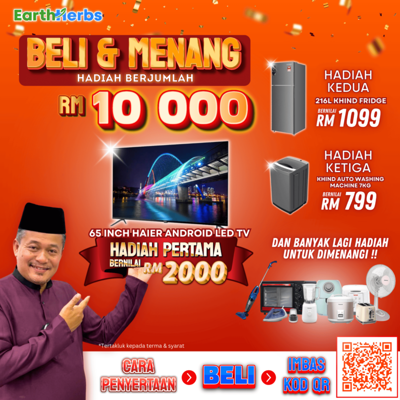 Sertai Peraduan EarthHerbs Beli & Menang! Cara penyertaannya mudah sahaja, beli sekurang-kurangnya 1 botol Gel EarthHerbs, anda automatik berpeluang memenangi hadiah-hadiah menarik bernilai lebih RM10,000! Lagi banyak anda beli, lagi besar peluang anda menang!