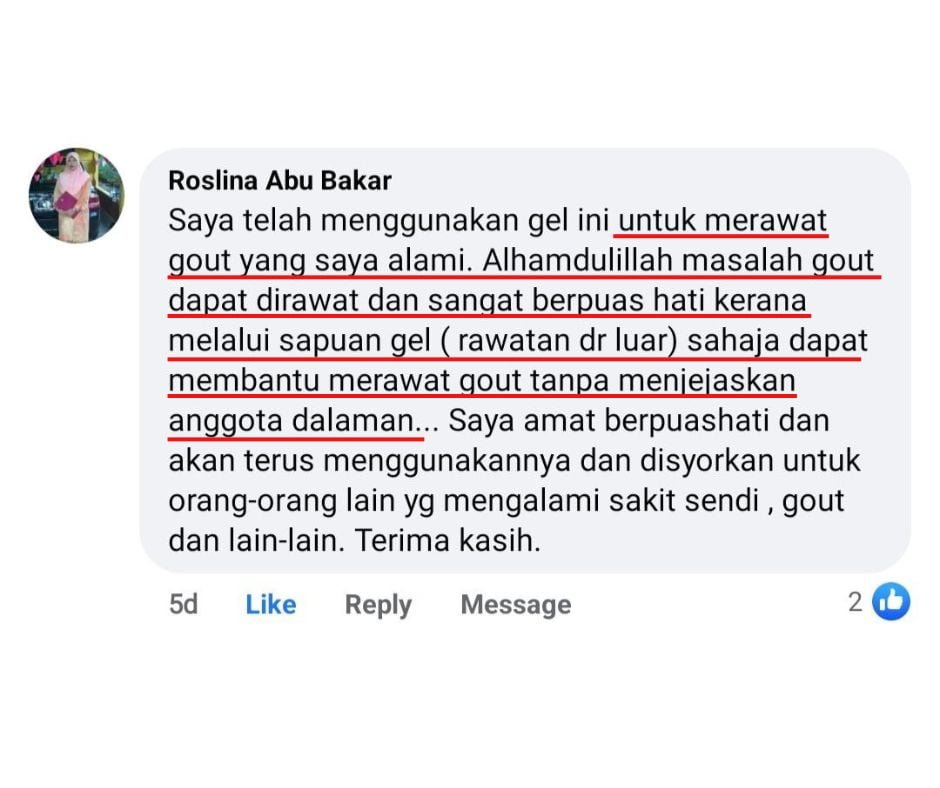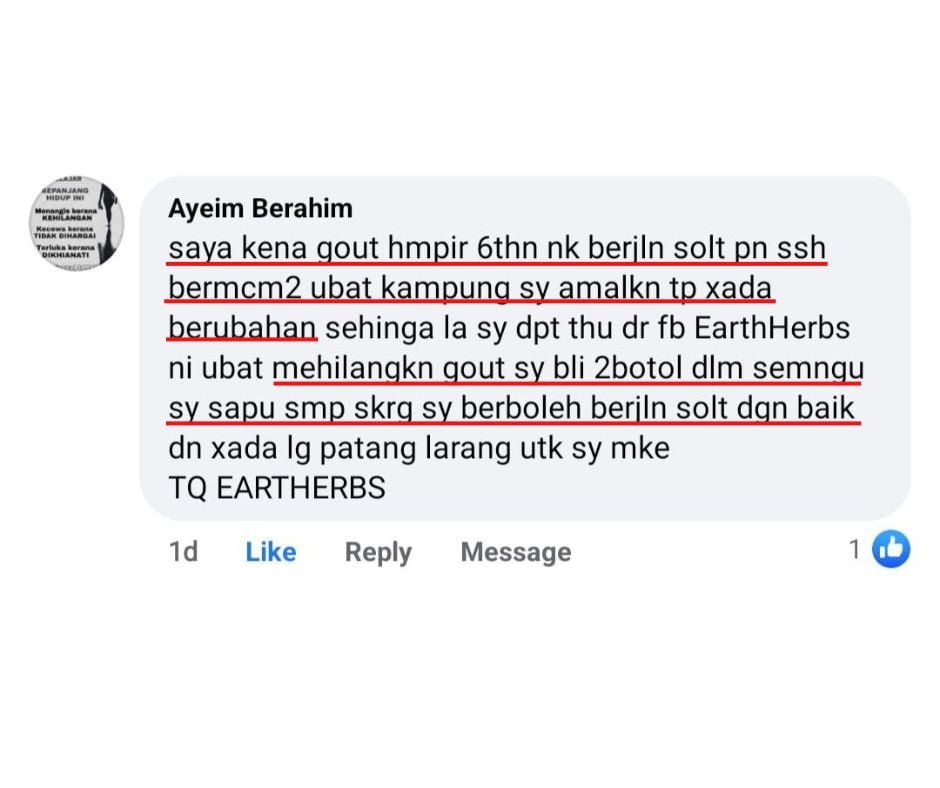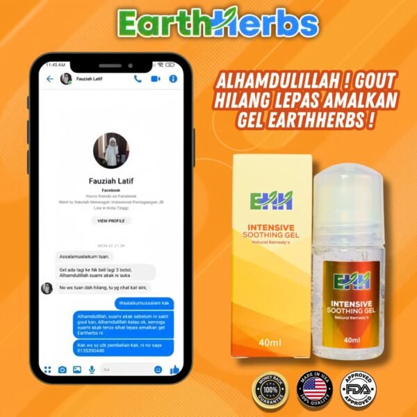 “Alhamdulillah gout pun dah hilang selepas amalkan Gel EARTHHERBS ni..”
