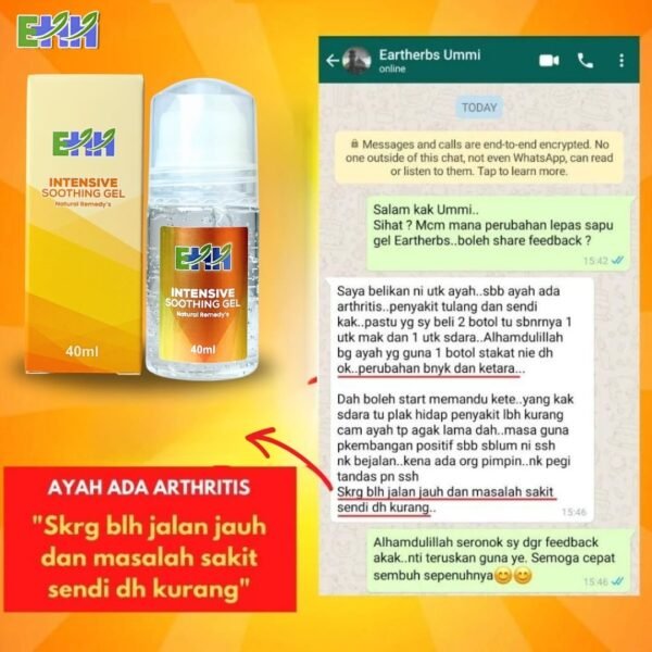 “Alhamdulillah sakit lutut dan semakin kurang selepas 5 hari amalkan Gel EARTHHERBS ni..”